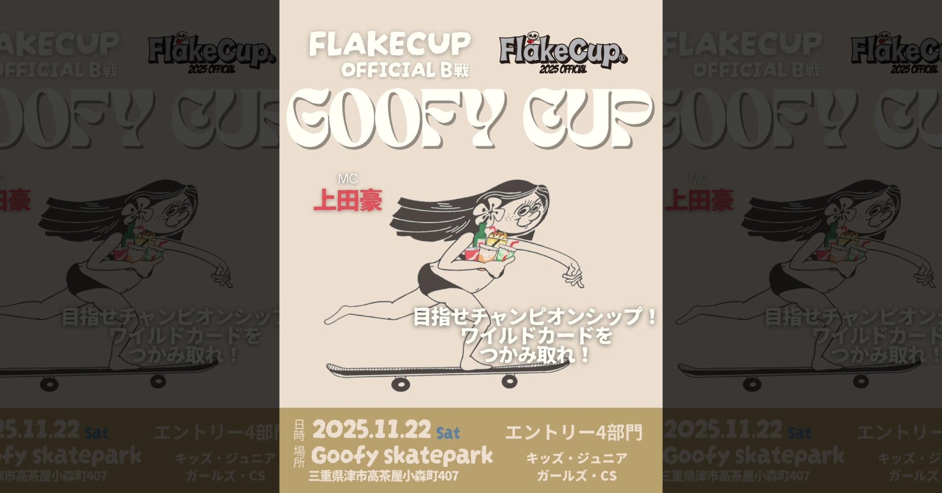 いよいよFLAKE CUP 2025も大詰め! なんと今シーズン最後のB戦は関東エリア&関西エリアの2会場同時開催となります! 東の東京は西多摩のNICO EMI PARK!! スケートボード・スノーボード・ボルダリングやトランポリン、バスケットボールなど、さまざまなスポーツをスポーツを楽しめる複合施設で盛大に楽しもう! エントリー受付は11月16日(日)18:00よりスタート! 全国キッズスケーターの皆様!ご参加お待ちしてます!