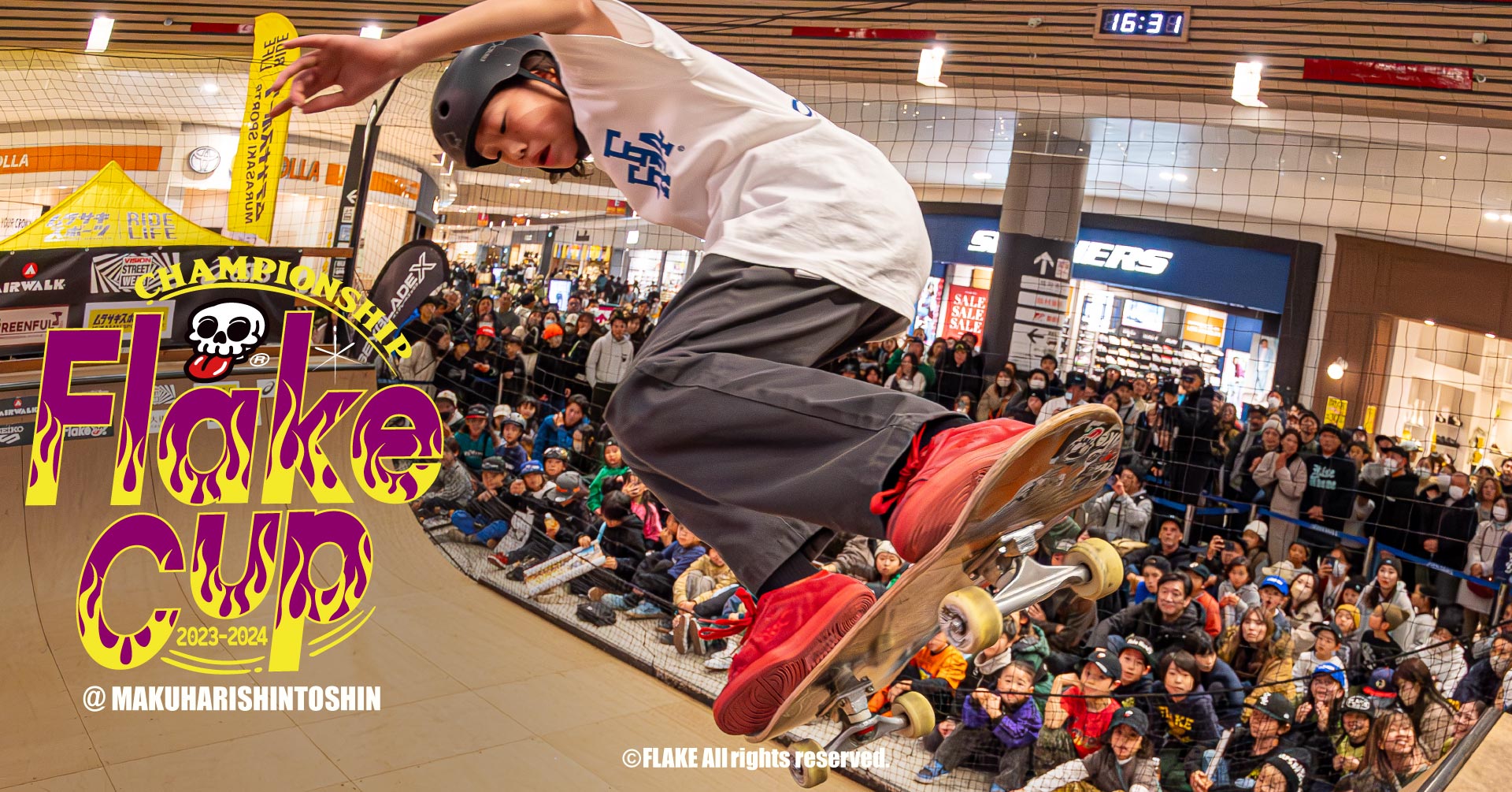 「FLAKE CUP」は、キッズアパレルブランド FLAKE が主催する、キッズスケーターの登竜門的なコンテストとして、スケートボード業界にキッズブームが起こる10年以上前 (2007年) から毎年開催されている「日本最大級のキッズ・ス ケートボードコンテスト」です。