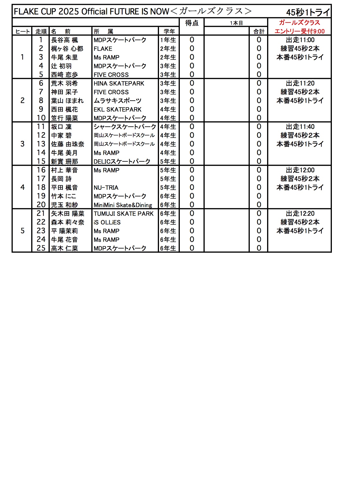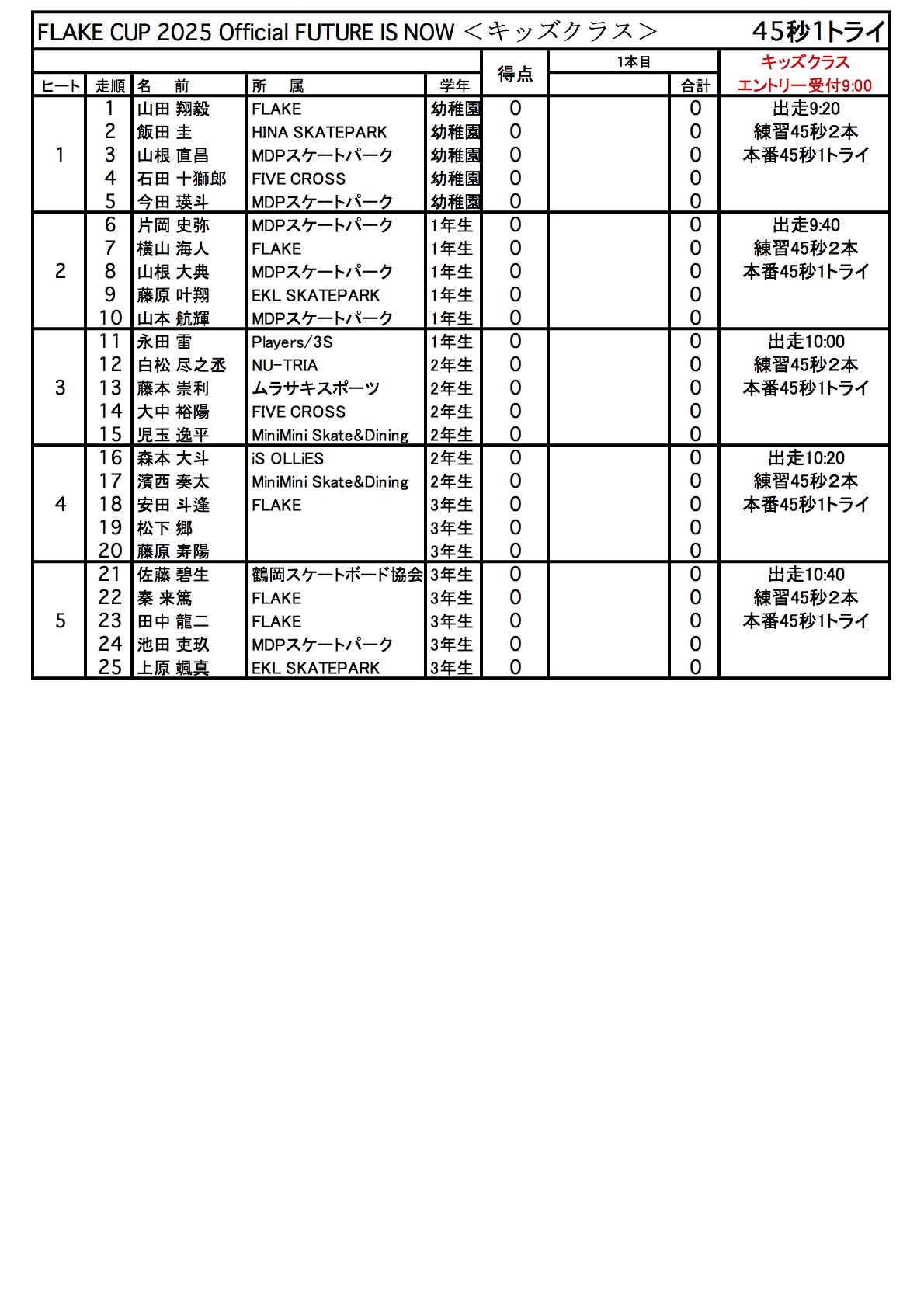 *キッズクラス、ジュニアクラス、ガールズクラスの優勝者には FLAKE CUP チャンピオンシップワイルドカード出場権が贈呈されます。