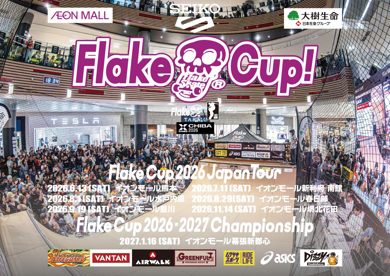 FLAKE CUP 2025-2026 Championship イオンモール幕張新都心・スケートボードスクール開催中の 2026年1月17日(土) 10:00〜、ムラサキスポーツでは 1F グランドコートにて FLAKE POP-UP SHOP をオープンいたします。